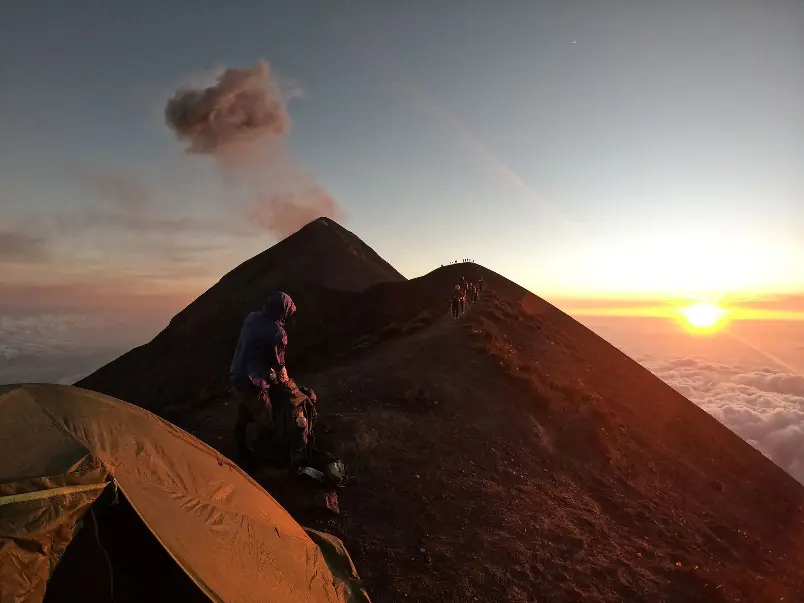 Day 11: Luxury in the heights! Ascent to the glamping on the Acatenango volcano and sunset with views of the Fuego volcano.